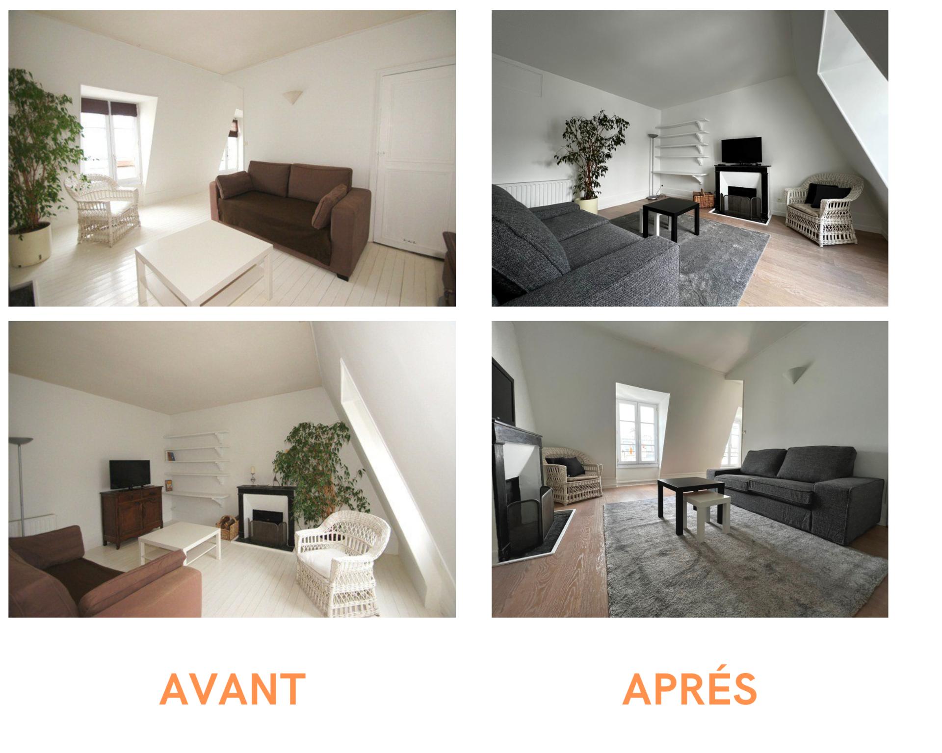 Transformation d’un deux pièces meublé de 41m2 situé au cœur du 3ème arrondissement de Paris avant sa nouvelle mise en location.