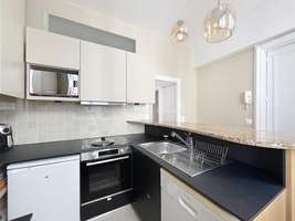 BAIL CIVIL SECONDAIRE SOCIETE UNIQUEMENT - 46 m², 3e étage, bel immeuble 18e rénové, ascenseur, entrée, séjour avec coin repas, 1 chambre (lit double), salle de bains, WC séparé, cuisine bien équipée (LL/SL, LV, four) ; chauffage au gaz, mobilier moderne confortable, placards, TV, bon état, parquet, sur rue, clair, bon standing, belle vue dégagée, quartier central.