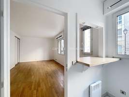 37 m2, rez-de-chaussée sur cour, bel immeuble moderne, entrée, pièce principale avec placard, salle de bains avec WC, cuisine ouverte équipée (WM/Dryer, ovens) ; chauffage électrique, eau chaude immeuble, très bon état, parquet, moderne, clair, calme, double vitrage, exposition Sud-Ouest, , .