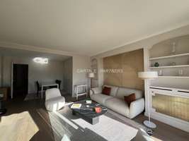 NEUILLY - 103 m2, 5e étage, immeuble moderne, ascenseur, face Hopital Américain, entrée, séjour/salle à manger, balcon, 2 chambres (lit double, lits simples), salle de bains, salle de douche à l'italienne, 2 WC séparés, buanderie (LL/SL), belle cuisine équipée (LV, fours) ; chauffage central, eau chaude immeuble ; cave, mobilier moderne, dressing, placards, TV, bon état, parquet, moderne, calme, double exposition, standing, vue, parking +150€ obligatoire.