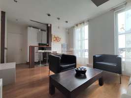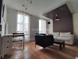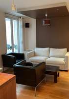 37 m², 4e étage, petit immeuble pierre sans ascenseur, séjour avec coin repas, 1 chambre (lit double), salle de douche (+ lave-linge), WC séparé, cuisine ouverte (four) ; chauffage électrique, double vitrage, mobilier moderne, placards, bon état, parquet, clair, calme, moderne, proche tous commerces.