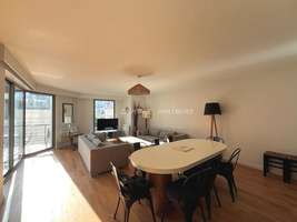 114m², 2e étage, immeuble moderne années 2000, ascenseur, salon/salle à manger, , 3 chambres (3 lits doubles) , salle de bains, salle de douche, WC séparé, cuisine moderne très bien équipée, chauffage électrique, double vitrage, placards, TV, bon état, parquet, clair, calme, moderne, terrasse.