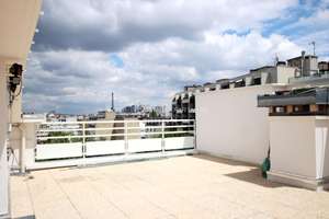 CODE CIVIL UNIQUEMENT, 42 m², 7e et 8e étage, immeuble moderne, ascenseur, entrée, séjour/salle à manger (canapé lit) avec balcon de 8 m², 1 chambre (lit double), salle de douche, WC séparé , cuisine équipée (four, LL) ; chauffage central, mobilier moderne, placards, TV, Refait neuf 2022, parfait état, parquet, calme, lumineux, balcon 8 m², terrasse 38 m².