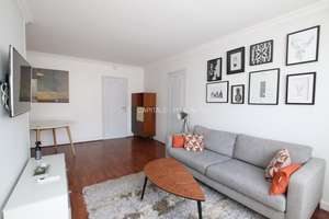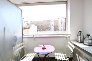 44m2, 6ème étage, immeuble moderne années 70 avec ascenceur, entrée, séjour / salle à manger avec canapé, 1 chambre (lit double), salle de bain moderne, WC séparé, cuisine toute équipée (LV, LL, SL, fours) ; chauffage au sol, eau chaude immeuble, mobilier moderne, placards, balcon 3m2, bon état, clair, calme.
