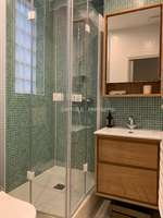 Boulevard du Temple, 55 m², au 3ème étage avec ascenseur d'un bel immeuble ancien, entrée, séjour / salle à manger, 2 chambres, cuisine séparée et équipé (LV, LL, fours) ; chauffage électrique, salle de douche moderne avec WC, mobilier contemporain de qualité, rangements, refait par architecte, lumineux, traversant, calme.