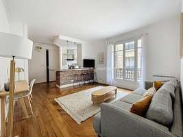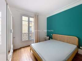 CODE CIVIL, 61m², au 4ème étage sur cour d'un bel immeuble ancien avec ascenseur, entrée, séjour / salle à manger, 2 chambres (lit double, bureau), salle de bain moderne, WC séparé, cuisine ouverte et équipée (LV, LL, fours) ; chauffage électrique + bar en briques, mobilier contemporain de qualité, nombreux rangements, au pied du métro, calme, Bir-Hakeim ! .
