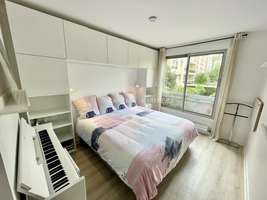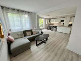 Rue Fourcher Lepelletier, 4 pièces de 98 m2, au 1er étage d'un belle résidence sécurisée, avec gardienne et ascenseur, entrée, séjour/salle à manger donnant sur jardin arboré, 3 chambres (lit double, lits simples) avec rangements, salle de bains, salle de douche, WC séparé, cuisine ouverte équipée (LV, LL, four), chauffage collectif, double vitrage, mobilier contemporain, nombreux rangements, balcons, bon état, lumineux, calme, parking double.