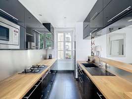 89m2, 2ème étage sans ascenseur, sur cour, bel immeuble, entrée, cuisine ouverte émnagée et équipée (Four, LV, Frigo, MO) et salle à manger, 1 chambre avec dressing et salle de bain, une 2ème chambre à aménager selon besoin avec salle d'eau attenante, 2 WC, de nombreux rangements, excellent état, parquet, calme, ensoleillé, .