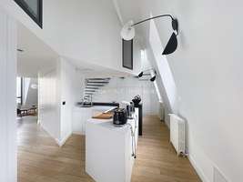 Loft 120m2, 4ème étage sans ascenseur, immeuble de standing, entrée, séjour, salle à manger, salon tv, cuisine dînatoire ouverte, nombreux rangements, 1 chambre avec salle de bain attenante, 1 chambre salle d'eau attenante, 3 WC, refait à neuf en 2025, clim réversible, terrasse de 25m2, calme, ensolleillé, immeuble avec services de conciergerie, charges incluant eau,électricité, internet et chauffage.