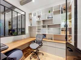 88m2, RDJ, immeuble de 2016, ascenseur, entrée, séjour avec cuisine ouverte équipée moderne, coin bureau séparé avec rangements, 2 chambres dont une suite parentale avec dressing et salle d'eau, WC séparés, salle de bain dans la seconde chambre, terrasse de 33m2, immeuble avec services de conciergerie, excellent état, domotique dans l'appartement, clair, calme.
